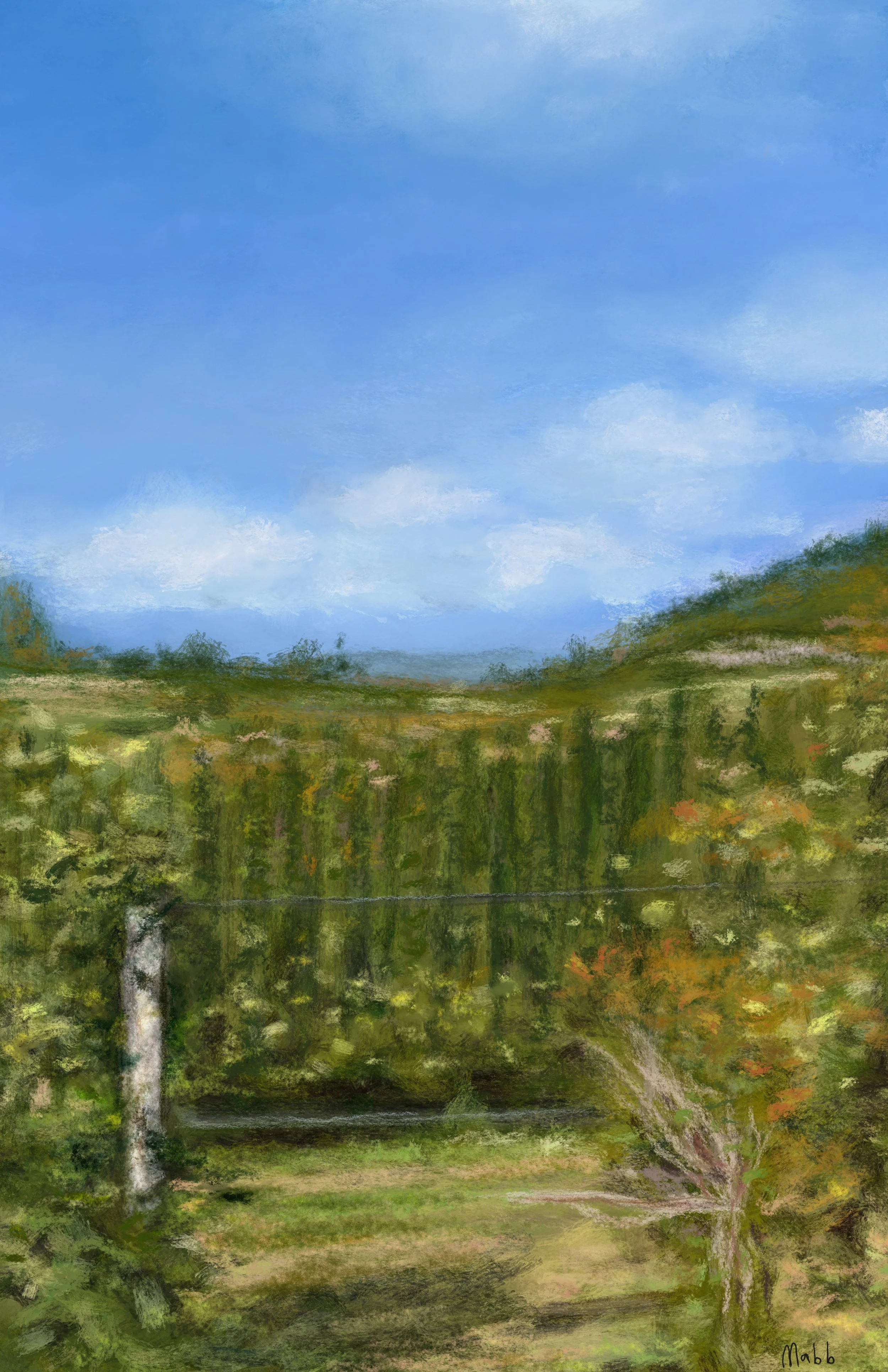 Tree, Fence and Field Along the Blue Ridge Parkway 13 x 19